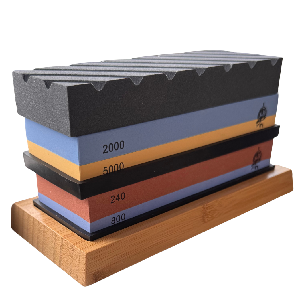 Dette slipesteinkit inneholder fire kvalitetssteiner: 240, 800, 2000 og 5000 grit, ideelt for grove reparasjoner til finpolering av kniver og verktøy. Perfekt for de med avretter og lær. Avslutt med lær for maksimal skarphet og speilblank finish. Utrolig gode verdi for et komplett og prisgunstig kit.